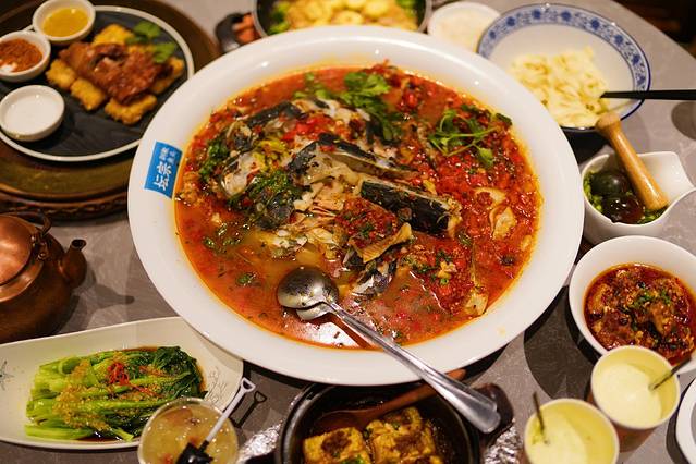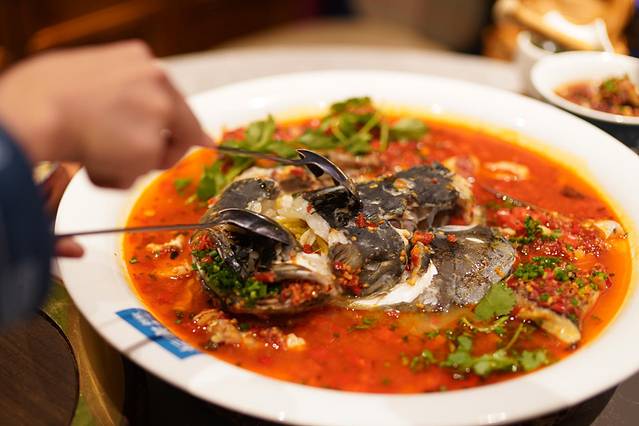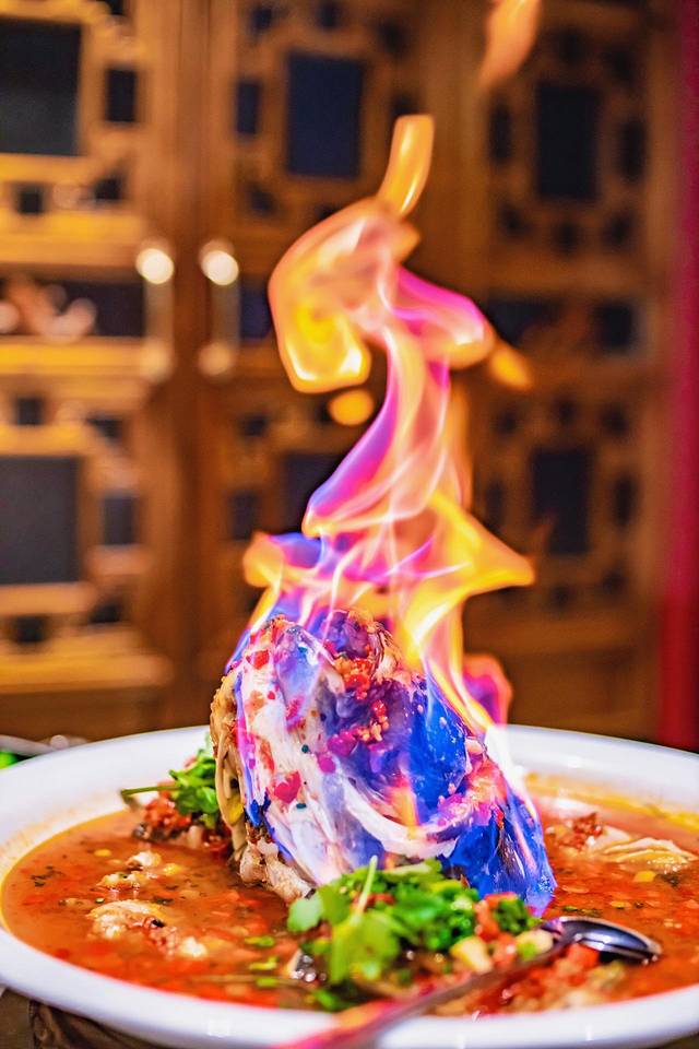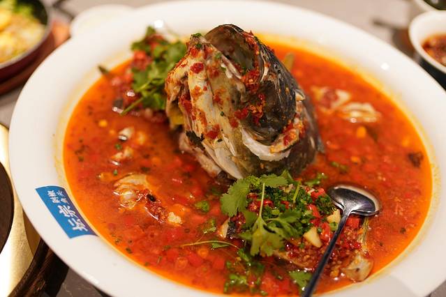 “鱼头大,嫩肉多,鱼头越大越好吃”,听着这样的宣传语我们两个吃货就毫不犹豫的点了大份的,🐟鱼头端上来的时候吓了一大跳,OMG !!!这也太大了吧!硕大的鱼头立在盘子里🥘,我还再想该从哪里入手呢,服务生就过来给鱼头淋上一小盅伏特加🍷,点燃火,火焰窜了十几厘米高🔥,寓意红红火火🔥🔥🔥,等酒烧完后再把整只鱼头拆分成方便夹起来的小块。看看这寓意,看看这仪式感,终于能体会到它如此火爆的原因了。味道也丝毫不逊色它的仪式!鱼头肉质特别鲜嫩,一点都不腥,配上剁椒,层次丰富,大份也可以被吃光光。吃完大鱼头🐟必须要试一下用鱼汤拌份手工面或者米粉,才能感受到剁椒跟鱼肉相融合的美味。