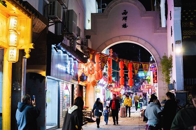 古街灯笼照今宵,夜晚的太平街灯火辉煌,人流如织。