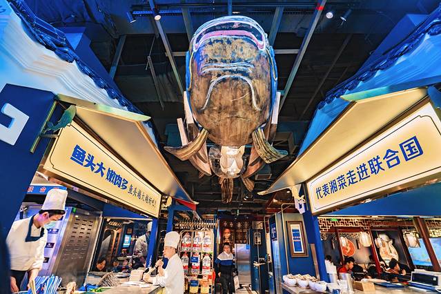 去长沙前,看《美食中国》节目被坛宗剁椒鱼头深深吸引,特意过来打卡。在大众点评上发现这家店还是必吃榜餐厅🏆,又是走进联合国的湘菜代表,头号响当当哒。门口就能看到鱼池里活蹦乱跳的大鱼。可能有一会要吃的那条哦。