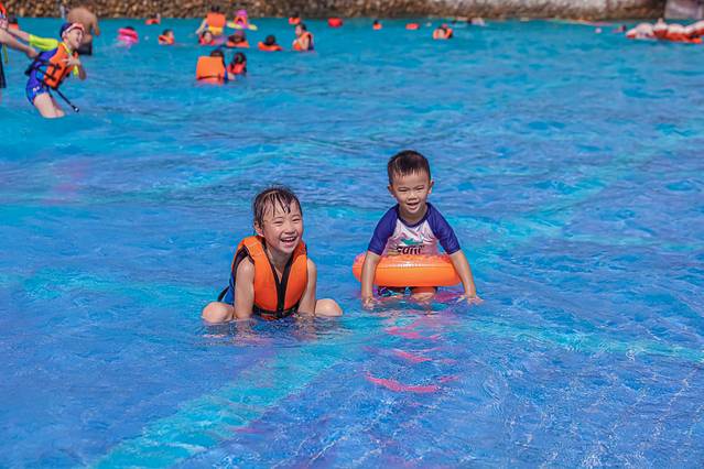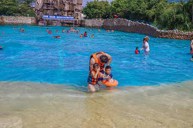 单次造浪时间可以持续半小时,到后面的浪会越来越小,俩娃反而挺喜欢后面的过程,浪小,相对平稳,甚是开心。