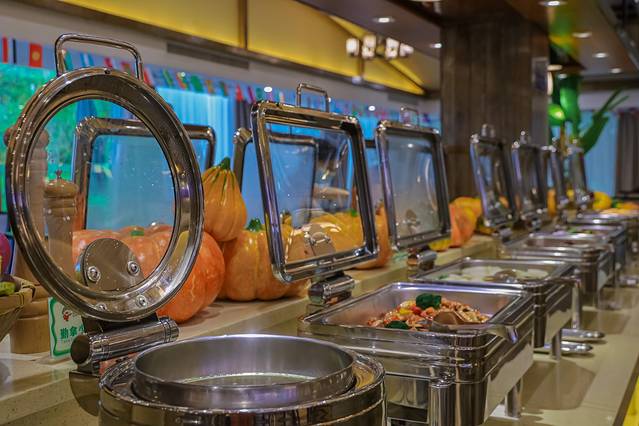 餐厅位于酒店一楼,不仅在早上提供营养丰富、种类繁多的中西合璧式自助早餐,晚上的自助晚餐更是菜品琳琅满目,让人眼花缭乱。