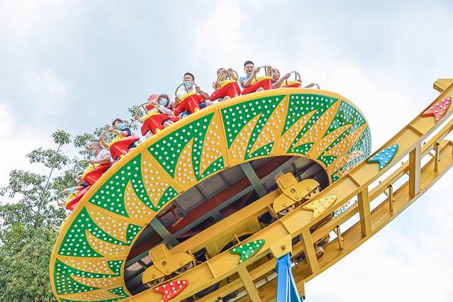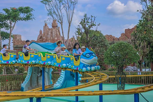 每个项目是单独分项目收费的,也可以买套卡比较划算!我们玩了鲨鱼过山车、旋转木马、大象乐园、碰碰车等等,还坐上了炫彩摩天轮。
