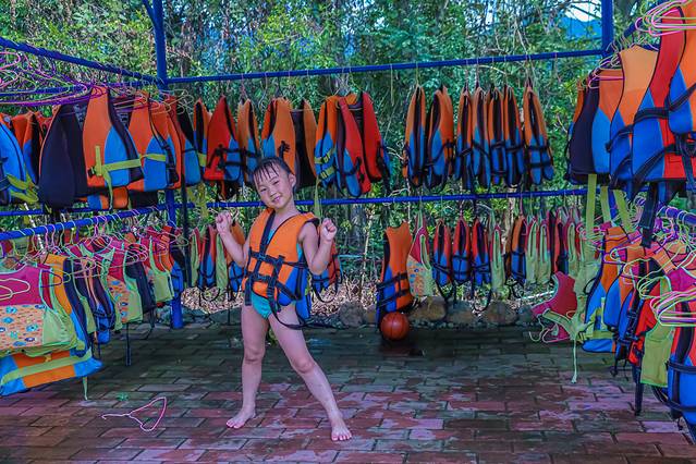 海啸池配备了足够多的救生衣,进入海啸池必须穿戴救生衣,这样不管大人小孩,都可以安心的享受那一刻的轻松。
