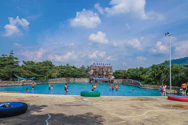 据说这个海啸池是全国首创3米高海啸冲浪池,每逢整点,海啸池就会在音乐和广播的伴奏中开启造浪,原本平静的水面则开始翻滚,不同大小浪级、不同方向的水浪可以让我们尽情冲浪,真是越浪越爽。