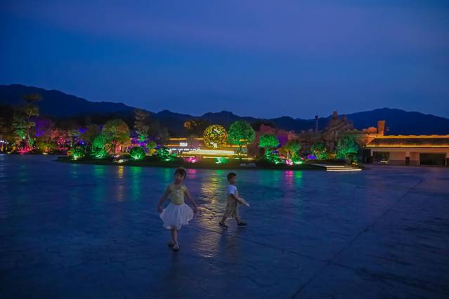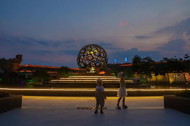 吃过晚饭,时间尚早,天气也凉快下来了,我们就带着娃再去了森波拉广场散步,夜晚的森波拉广场,呈现出梦幻般的景象。