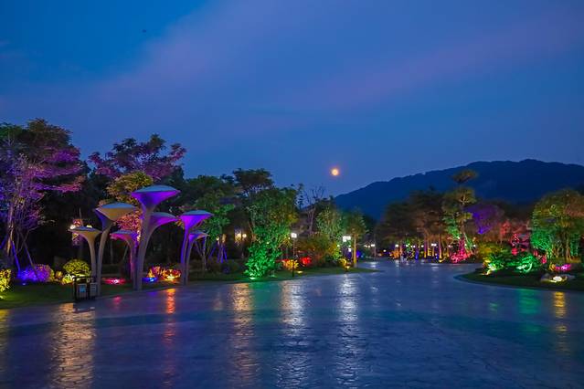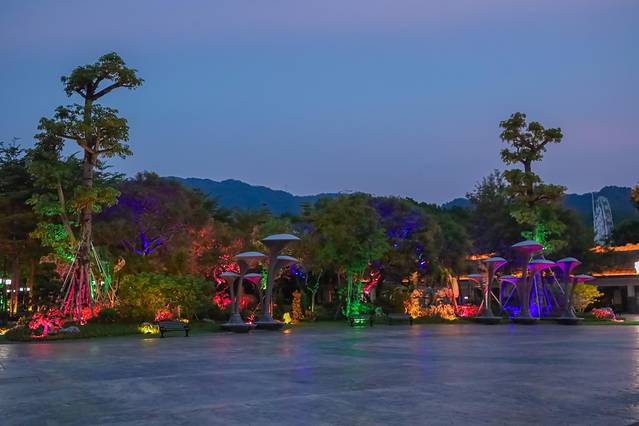 灯光璀璨和火树银花,不同颜色的灯光,结合不同树木、花丛打造的不同场景,简直就是艺术品,就像走进了美丽梦幻的童话森林里,开启一场梦幻之旅……