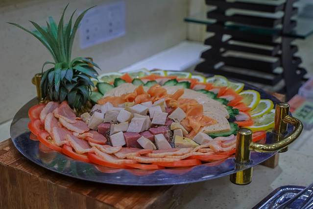 现点是煎牛扒,肉质鲜嫩,看这排队的阵仗就知道多受欢迎。最受欢迎的要数海鲜,怎么可以这么鲜!一大盘被秒光,好在服务员即刻补上了一大盘,我才吃到了。水果也是不少,品种多样,各选所爱。哈密瓜,西瓜,随便吃。