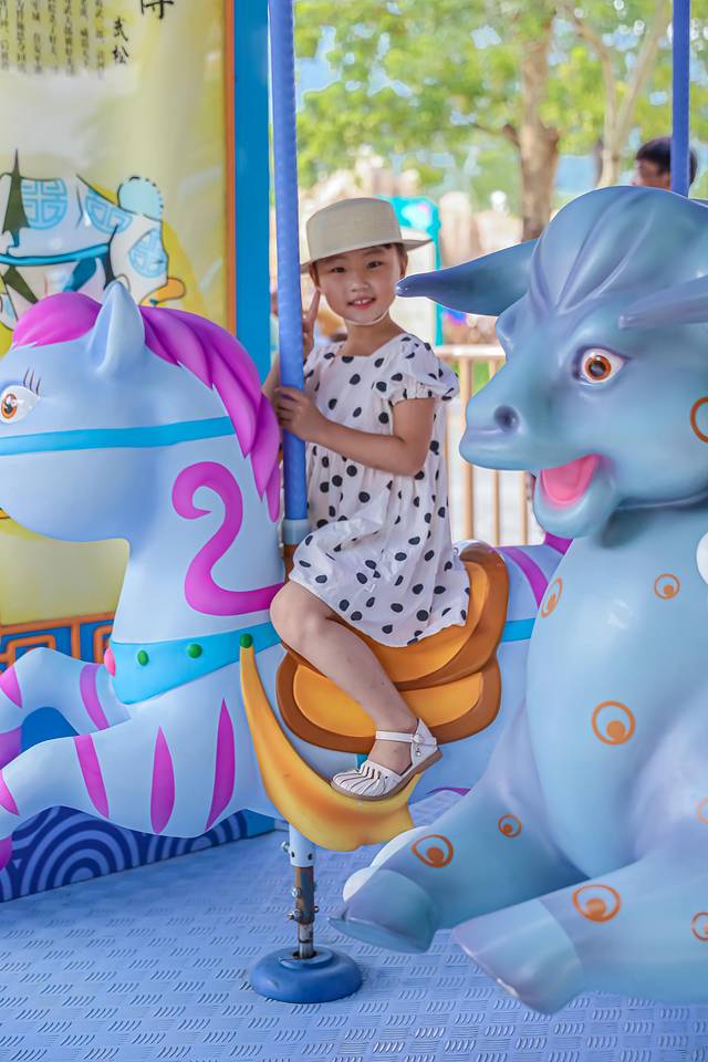 波比羊乐园大约有30余组机动游戏设备,根据每个人不同年龄段、不同偏好可以自由选择玩乐的项目,有刺激的,比如自由落体、鲨鱼过山车、摇头飞椅、虫虫碰碰车等,有相对温和点的,比如旋转木马、大象乐园、炫彩摩天轮等。