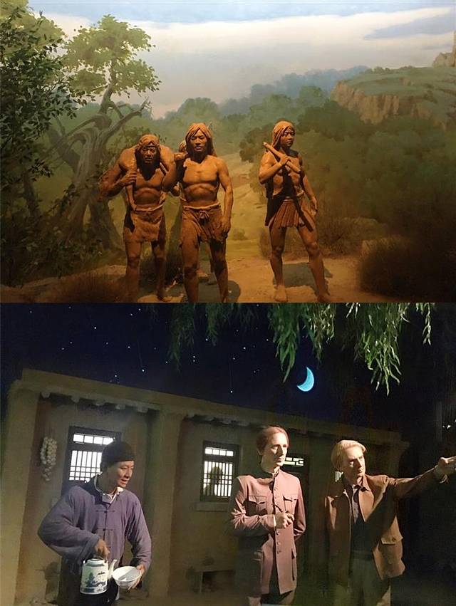 参观第一站水洞沟遗址博物馆:外形仿水洞沟名为石核的石器建造而成,建筑面4308平方米,它摒弃了传统展馆的展示形式,以大型雕塑、超大型半景画、幻影成像、实景、文物等展示形式,结合世界最先进的声、光、电等技术,再现了三万年前远古人类生产、生活和灾难骤起被迫迁徙的活动场景,开创了中国博物馆展示形式的先河,馆内包含目前国内唯一“面积最大”的室内观众介入式动感体验区,其多项专利技术填补了国内外空白