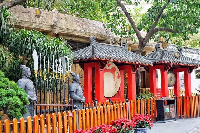 还有充满复古味道的美食街,传统的抛绣球节目、国风表演快闪秀,炸裂的武术表演,让你有种刹那梦回大宋,跌入金戈铁马江湖的奇妙感觉。