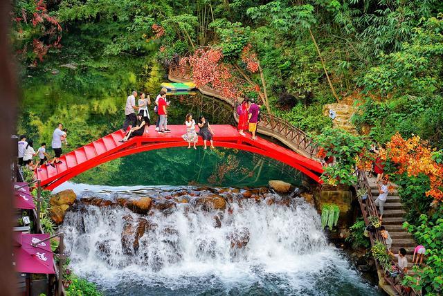 站在二楼的包房里,玻璃窗外都是郁郁葱葱的山林,推窗可见山见水,并独揽网红桥的全貌。