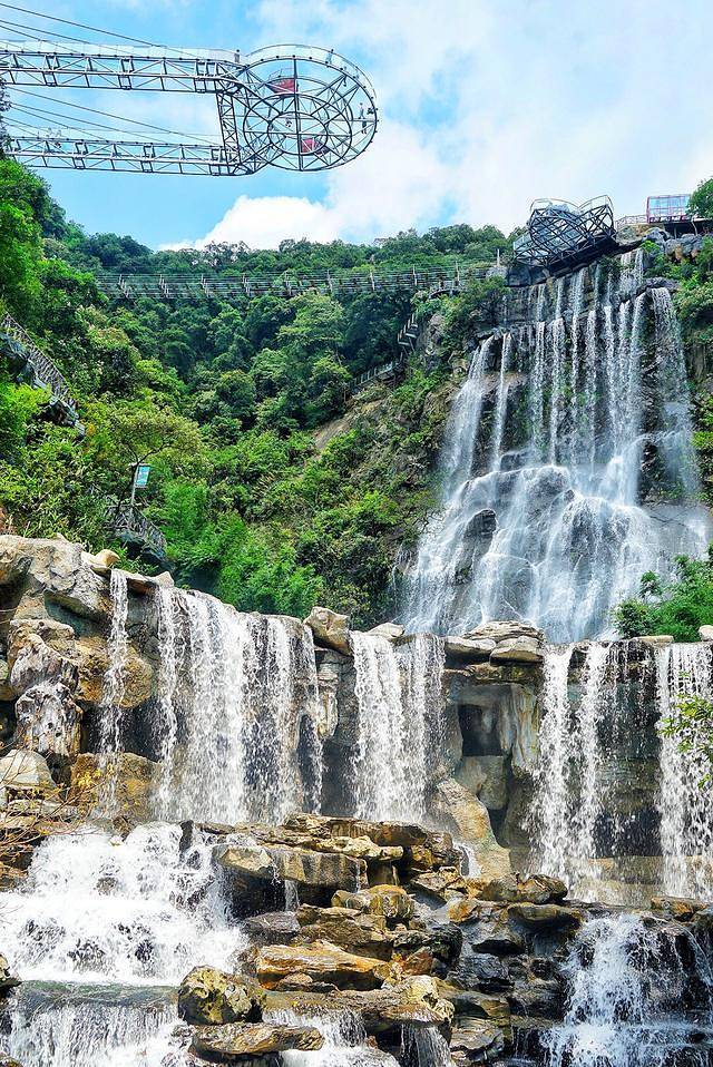 6大玻璃项目,悬浮在古龙峡530米的群山之巅,瀑布之上,全长1300米,面积1.2万平米。包揽了世界最长的高空玻璃游览线路、世界游览面积最大的高空玻璃组合、世界最多空中项目等多项世界纪录,站在玻璃之上,玩的就是心跳,能叫你走到腿软。