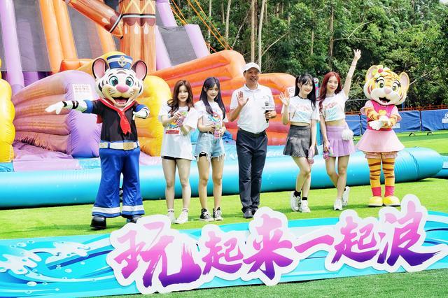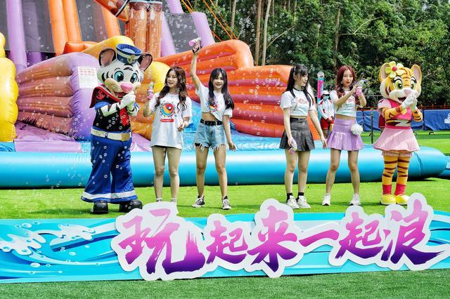 四颗新星携长隆水上乐园总经理梁伟林,在“泡泡水堡”主题游乐区,举行了热辣的青春下水仪式。