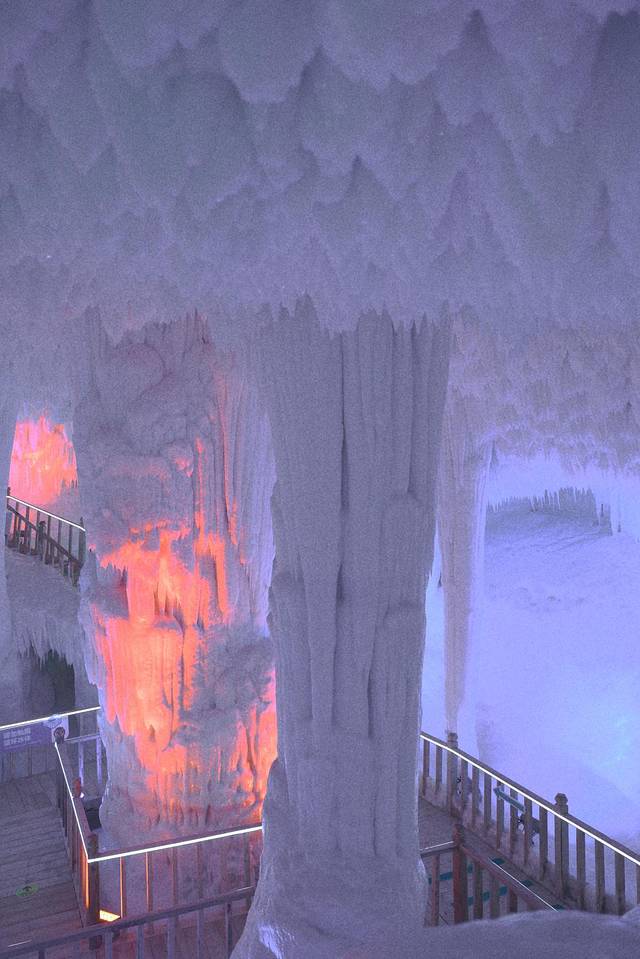 一边是火焰一边是冰山!风景秀美的云丘山景区里暗藏着世界罕见超大冰洞群,这可是300万年罕见的冰洞群,所有来游玩的相信和我一样很是期待。我是8月中旬来游玩,天气很热,进入洞穴前满身大汗,进入洞中瞬间从30多度高温逆转零下十度,冻的我直打颤!分秒体验冰火两重天的感觉。