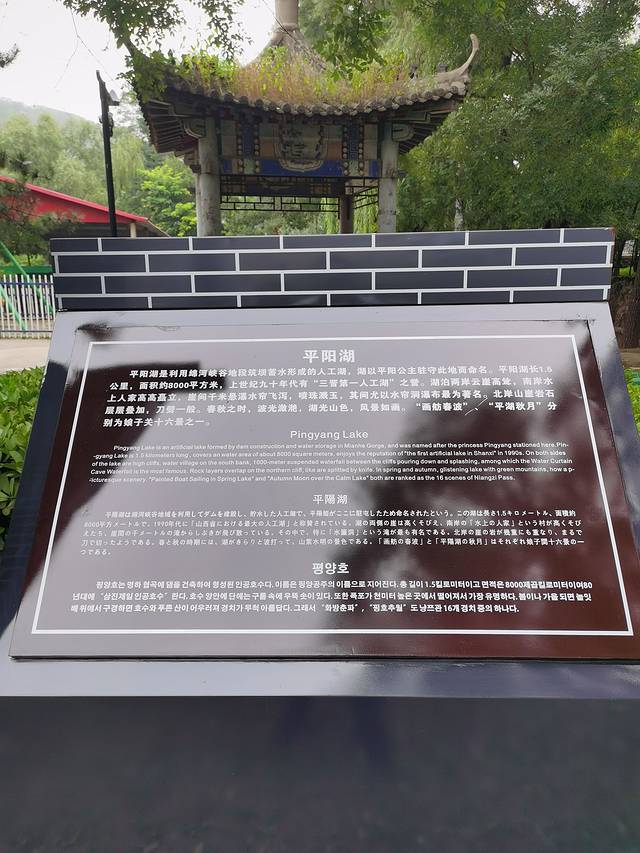 平阳湖号称“三晋第一人工湖”,长约1500米,有橡胶坝蓄水而成。