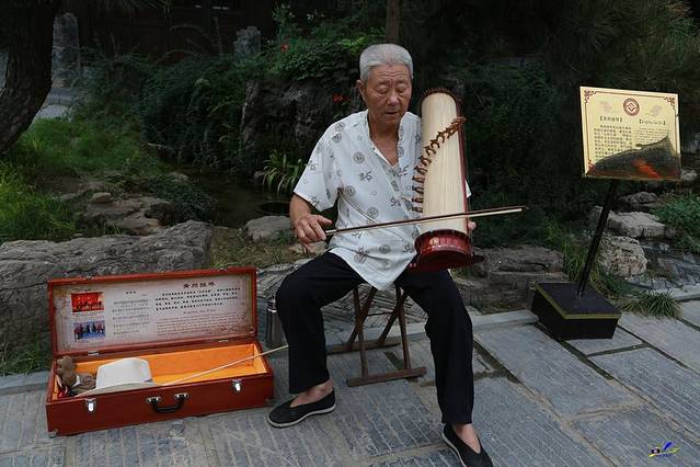 街道的两旁除了极具特色的清真熟食店外,还有各色商幡在招展,如裱字画店、古董店、面食店、工艺品店,大家有条不紊地经营着自己的生活,并在闲适的慢生活中扮演着别人的景色。街面上偶有穿着时尚的青年男女走过,和着这古朴的老房子形成了一种穿越时空的美丽。