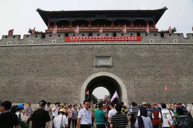 从“阜财”门下车,进入长达10里的古街,街道两旁尽是一些老字号商家。阜财,是厚积财物的意思。此语原出《孔子家语·辩乐解》:“昔者,舜弹五弦之琴,造《南风》之诗,其诗曰:‘南风之薰兮,可以解吾民之愠兮!南风之时兮,可以阜吾民之兮!’”后因以“阜财解愠”为民安物阜,天下大治之典。汉·扬雄《法言·孝至》:“君人者,务在殷民阜财,明道信义。”李轨注:“阜,盛。”关于“阜财”的说法,从古至今,论著颇多,在这里我们不一一详述。如今,在青州古城的城门上,我们看到“阜财”二字,足见在过去这里的繁华与鼎盛。