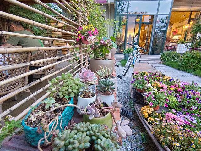 偶园面积虽不大,但结构却十分严谨,布局也恰到好处。满园内亭阁棋布,怪石嶙峋,曲径通幽,竹柏森森,花木隐翳,泉水叮咚,是闹市中一处僻静而又优雅之所。进入偶园,一般首选右拐,此时园内四株明朝的桂花,特别抢镜。四株桂花,均为盆栽,看着个头虽不大,却已四百余年。此外,园内还有三株明代留下来的迎春花,虽“沧虬崎岖”、“老态龙钟”,但始终没有间断开花。