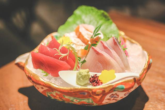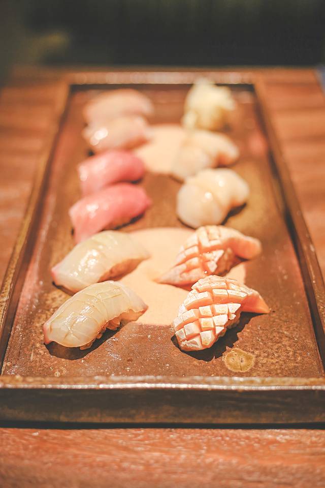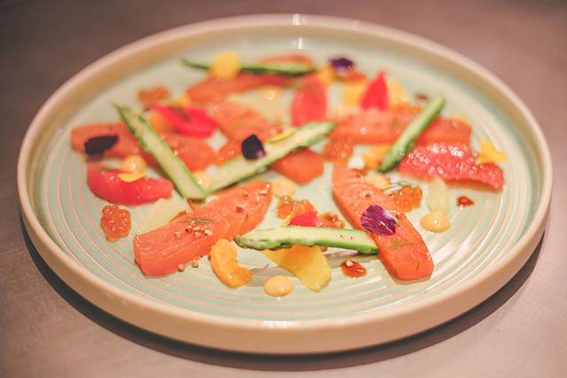自制西柚杜松子酒熏苏格兰鲑鱼:厚切的生鱼片口感很好,搭配了西柚又很清香。