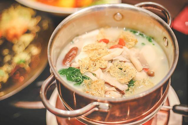 鱼汤珍菌浸菜苗:汤汁香甜,各种食材的味道完美溶于其中。