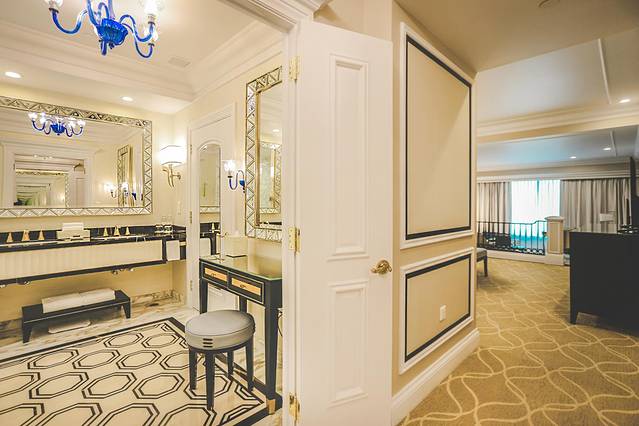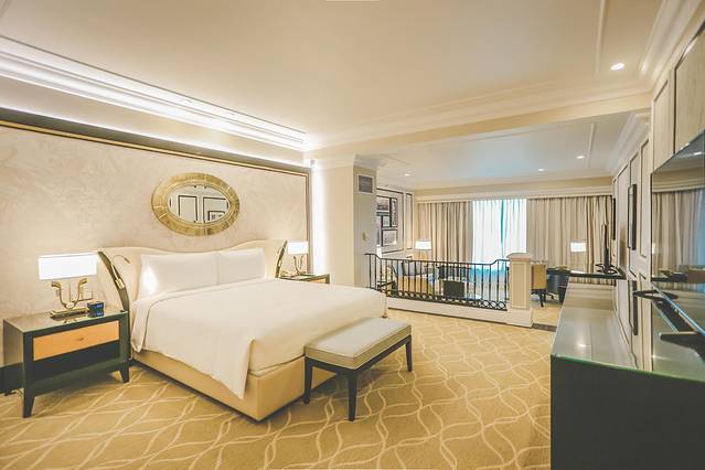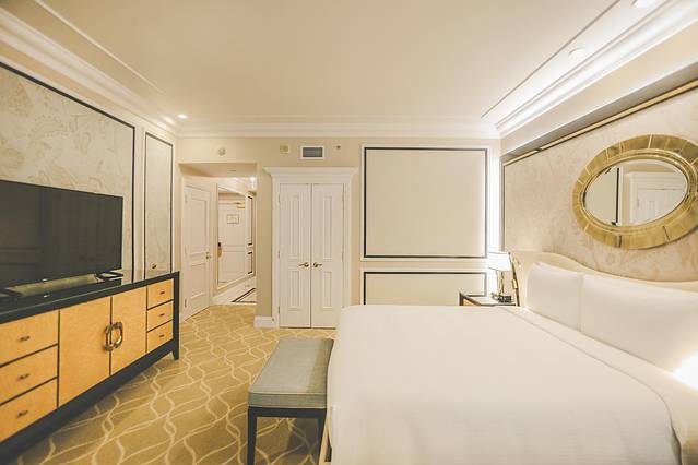 威尼斯人酒店我选择了奢华皇室套房,奢华皇室套房以贡多拉船为灵感而布置,带来纯粹的威尼斯体验。特大床、独立客厅、大理石浴室……让我们尽享奢华的度假体验。