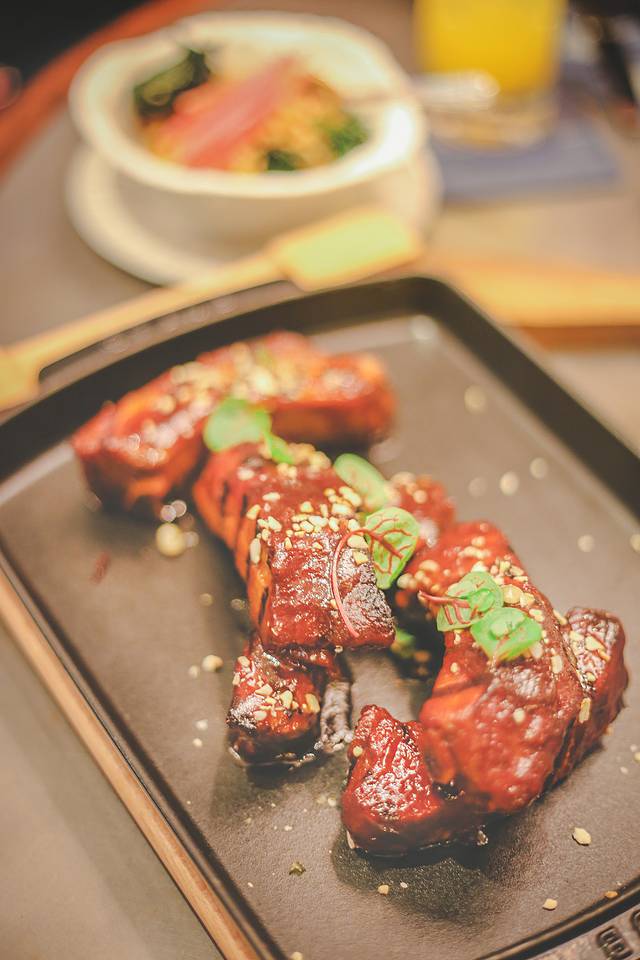 焦糖烤排骨:烤得非常香,酱汁很入味,这道菜是这一顿胖哥的最爱。