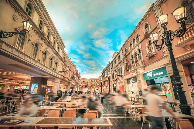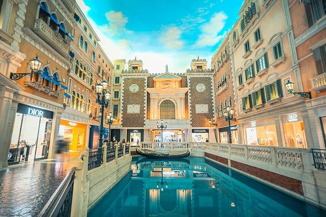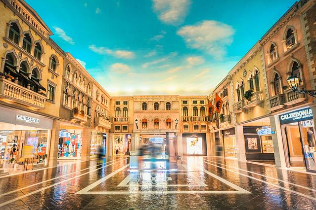 巴黎本就是世界著名的购物胜地,蒙田大道、香榭丽舍大街、凡登广场、圣奥诺雷路,这些都是巴黎富有浪漫且韵味十足的购物之地。而在澳门的巴黎人购物中心,也将其一一复刻。