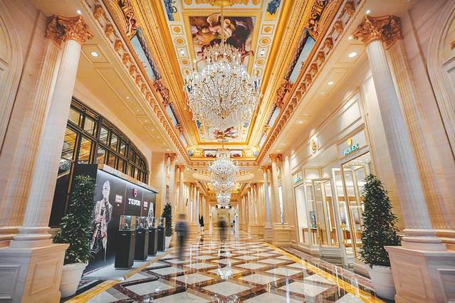 穿过门廊之后,随即进入澳门伦敦人的核心地带水晶金殿,这里是必打卡的拍照点。