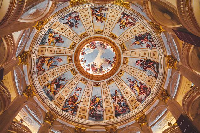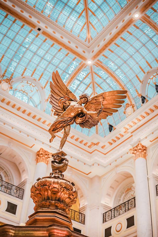 除了抬头欣赏精致的玻璃天花,也别忘了四处看看。在水晶金殿内,还布置有一些经典的雕塑和画作。