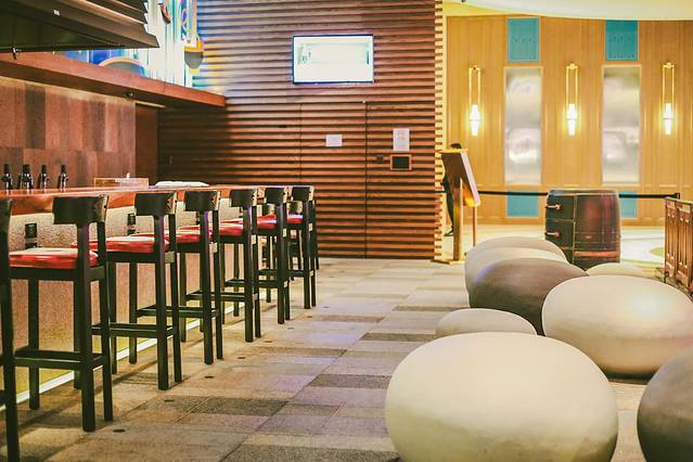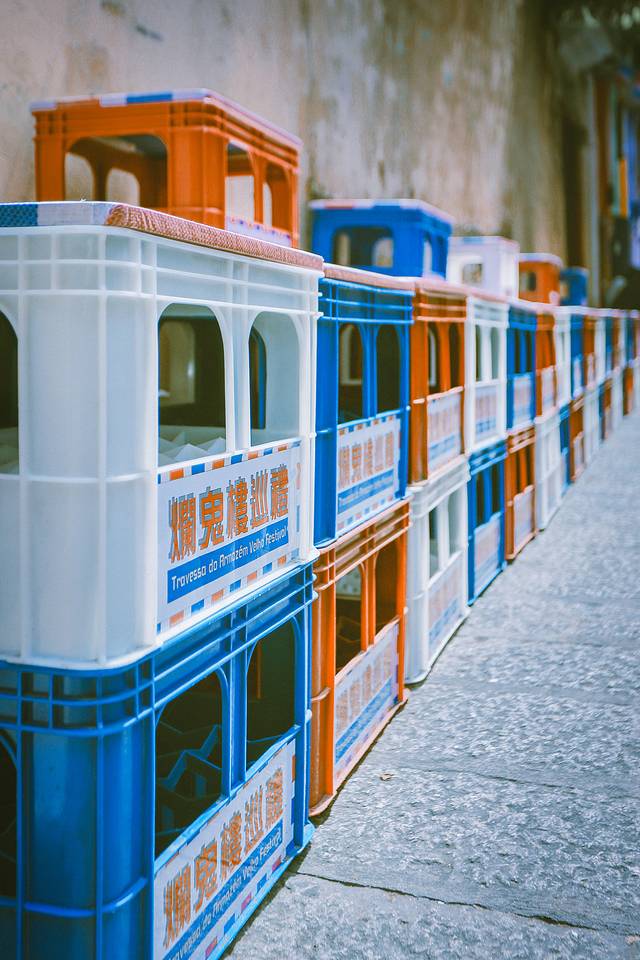 更有趣的是,这边的桌椅太有味道了,是由啤酒框改造而成。加上红白蓝塑胶袋装饰,可以说是把环保诠释得淋漓尽致。一般在餐厅内点好餐之后,便可以在外面的公共区域用餐。