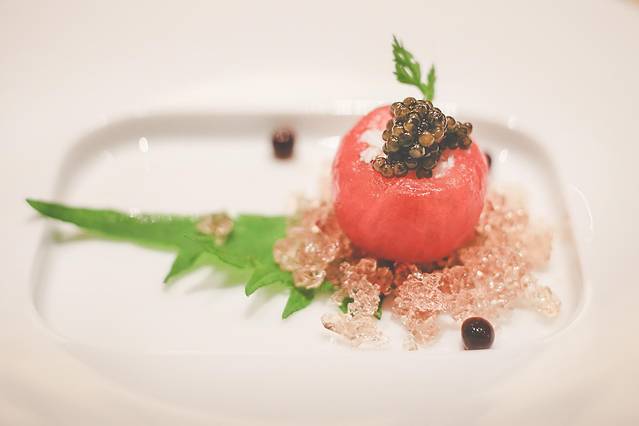 蜜汁番茄:餐前小吃,就足以让我想要给这家餐厅点赞了。果肉饱满,酸甜口感。搭配的醋冻,简直太开胃了。