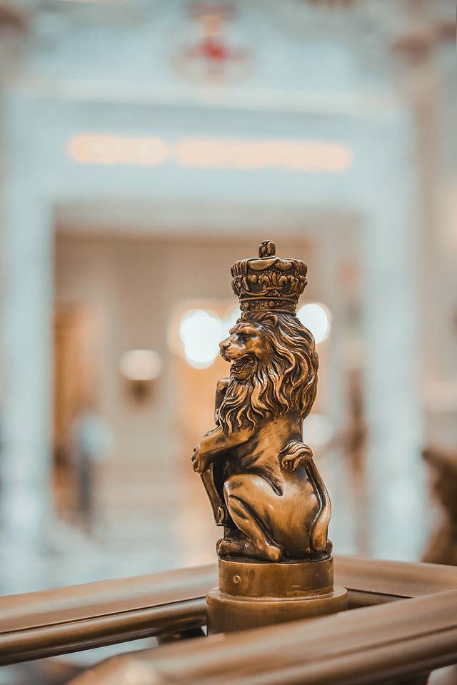 喷泉旁的栏杆上,还有着精致的狮子雕塑。