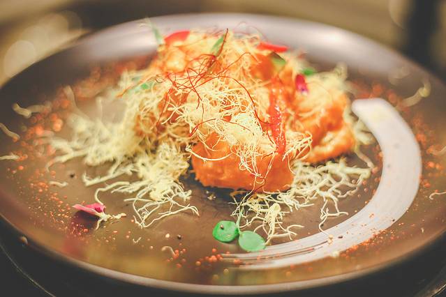 南瓜湿奶油炒虾球:浓浓的南瓜汁配着奶油,味道浓郁却一点也不腻。虾的原料食材非常赞,新鲜且个大。