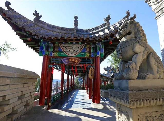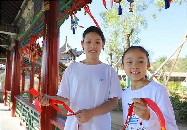 ★到月门旁的祈福长廊,系福包、系同心锁、系福条、挂风铃(金银满挂)。