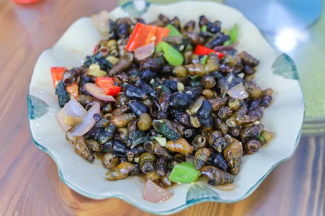 山坑螺是派潭农家乐的特色风味,产于山涧水溪中,味道特别鲜美,螺肉爽脆入味,真的越吃越爱!特别是珊珊,自己就吃了大半盆~