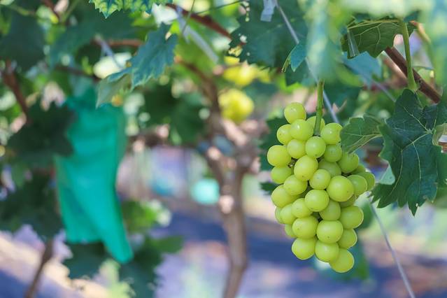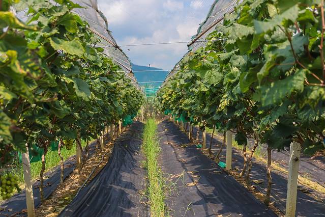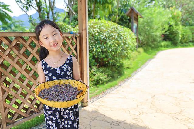 葵对面就是不同的果园采摘区了!刚好是葡萄的季节,就带着珊珊和睿睿去了葡萄园,园区很大,葡萄也是低挂着的,睿睿100cm的身高也可以采摘得不亦乐乎,超级方便!对了,别看这些葡萄青青的,还挺甜的!我们晚上在房车营地的院子里边看星星边吃着自己采摘的葡萄!