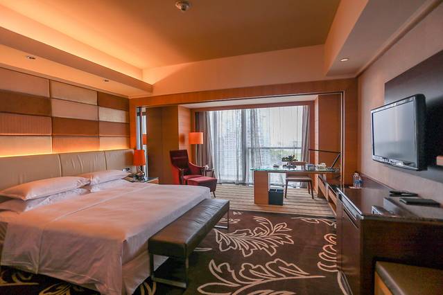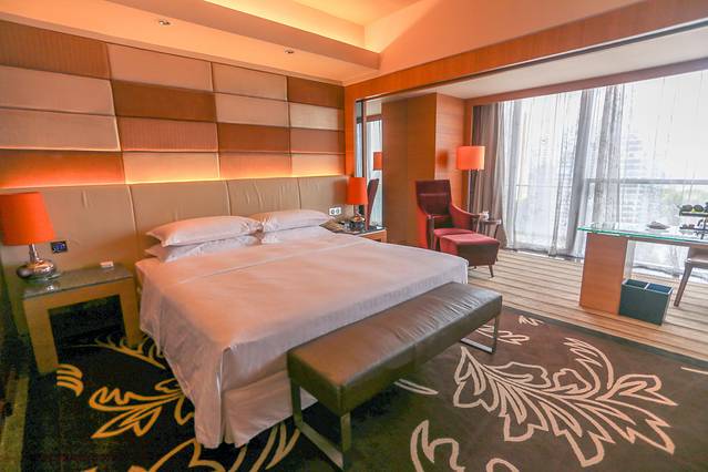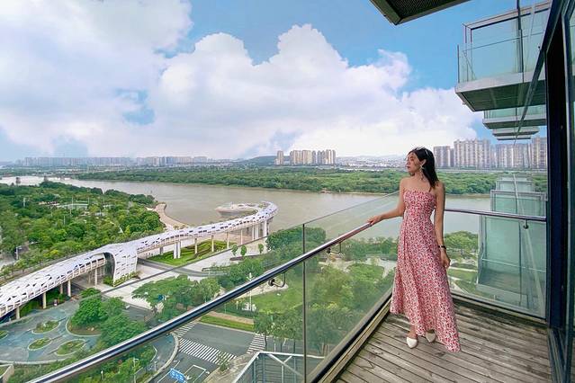 酒店的房间同样用了大量落地玻璃的设计,在行政房足够高的楼层俯瞰楼下的美景。