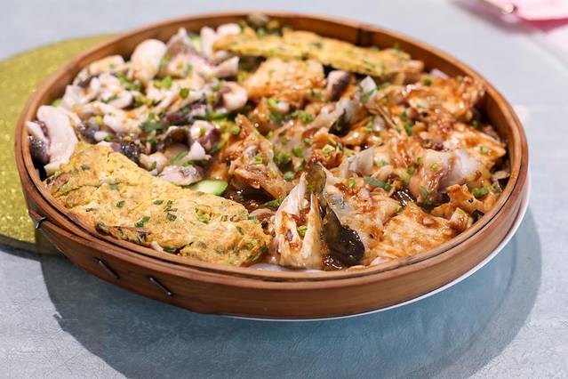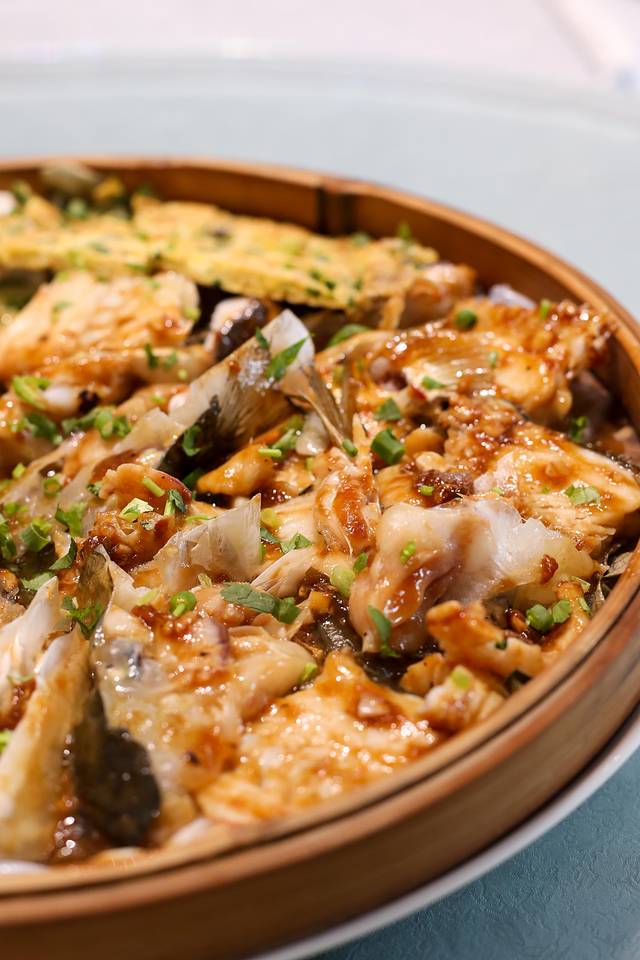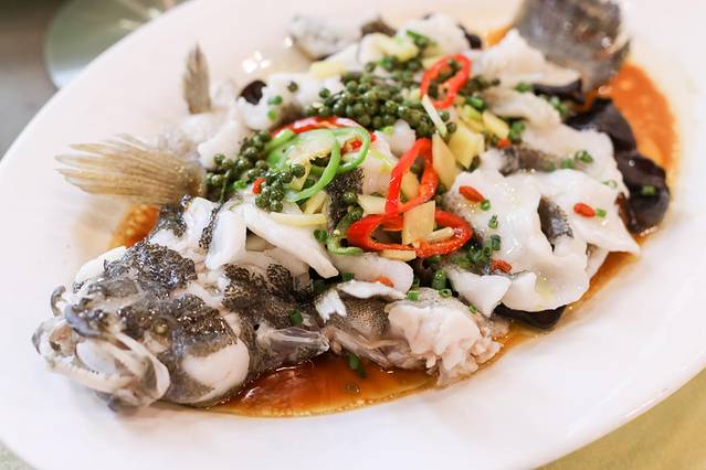 特色花椒蒸笋壳鱼 笋壳鱼鲜甜嫩滑,大厨起出鱼片,完全无骨的鱼片食用非常方便。蒸制加入了木耳和花椒,花椒麻香的味道更提升了鱼肉的鲜甜。木耳吸收了鱼肉鲜甜的味道,也成为不能错过的美味。