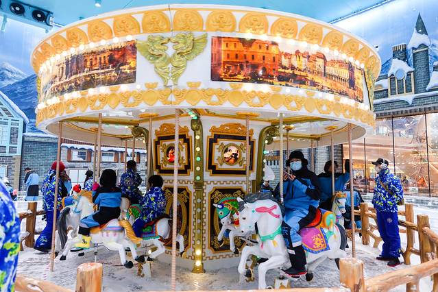 寻回童真其实是一件很简单的事情,坐上旋转木马,在冰天雪地中感受那一份童真的快乐,就是小幸福。