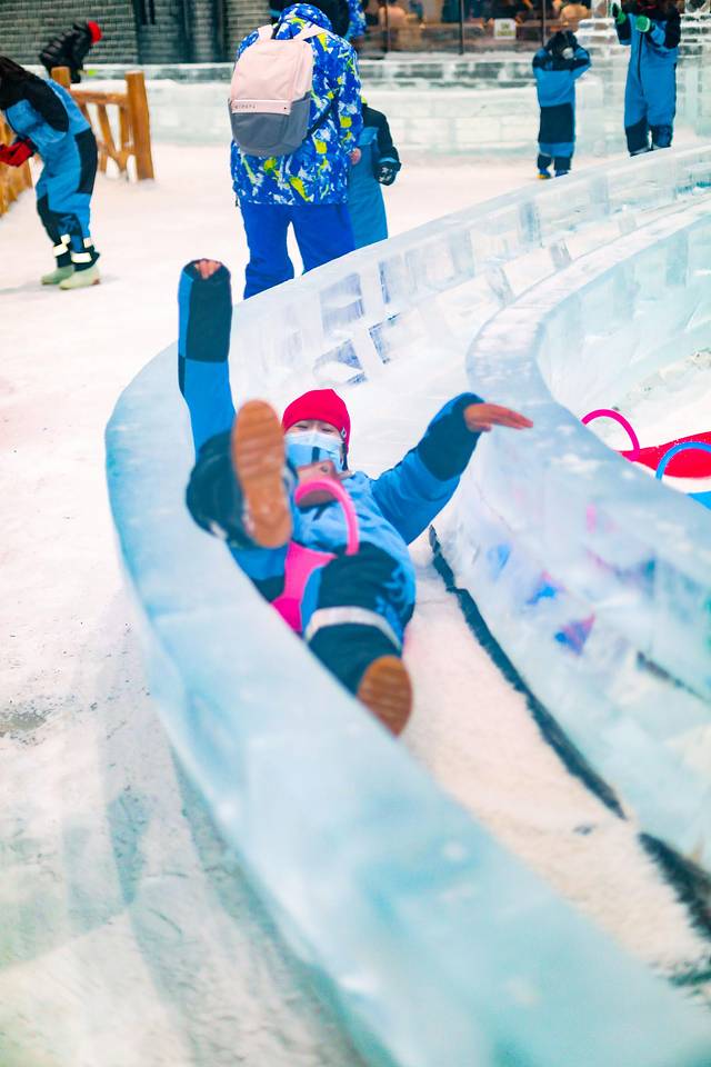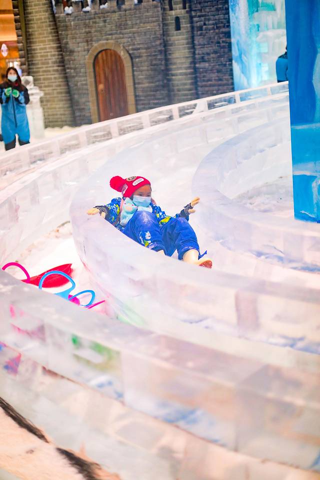 冰雪滑道 小时候喜欢滑滑梯,在滑梯上滑下似乎就是童年最简单的快乐。这里的滑道设置有不同的高度,无论只是想体验一下的矮滑道亦或是感受更刺激的速度,都能得到满足。