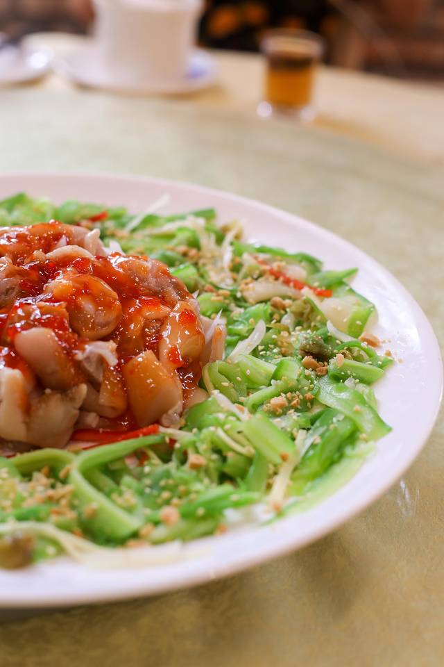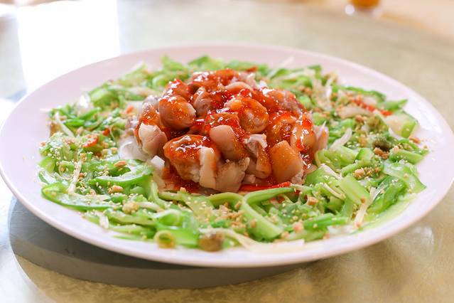 泰汁猪手拌凉瓜青 爽口的猪手拆骨,加入清爽的泰汁,微微酸辣的味道最是开胃。加入了同样清爽的凉瓜青,凉瓜青些许的苦味不会太重,爽口无比。