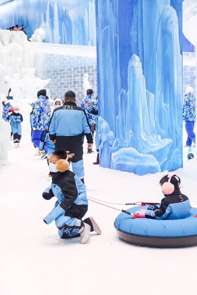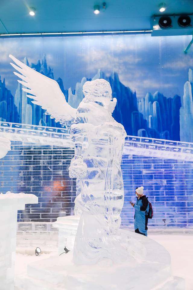 位于这里购物中心的乐漫冰雪王国重现了北国童话的风光,看冰雕,看飘雪,充满了童话味道。