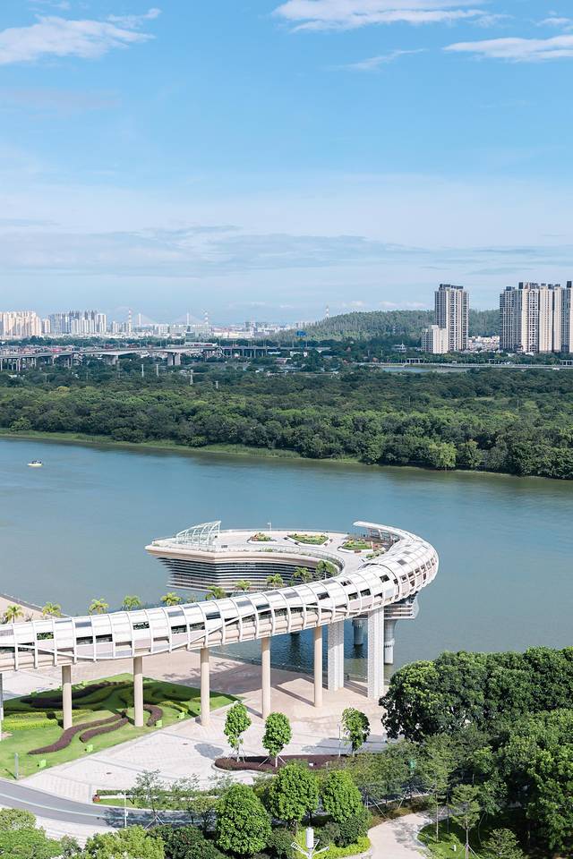 江边就是这里凤凰广场的空中走廊,蜿蜒的走廊造型非常特别。