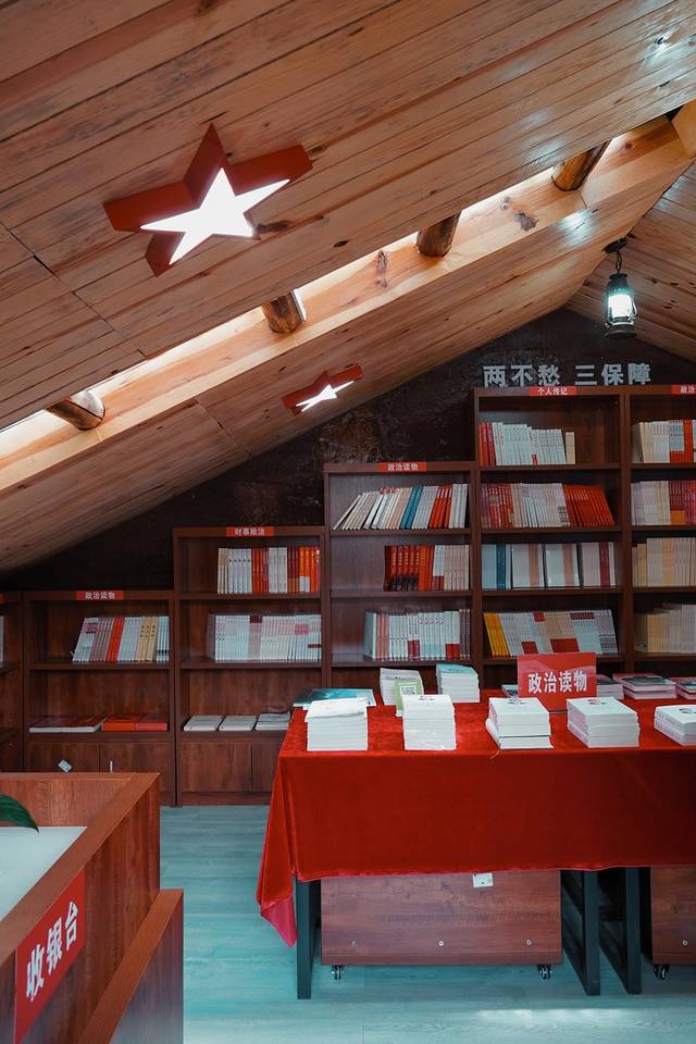 新华书店打卡,沿着木梯上阁楼就是书店,这里也拍清新人像照的好地方,最好机位是木梯边,或书店内假装看书。
