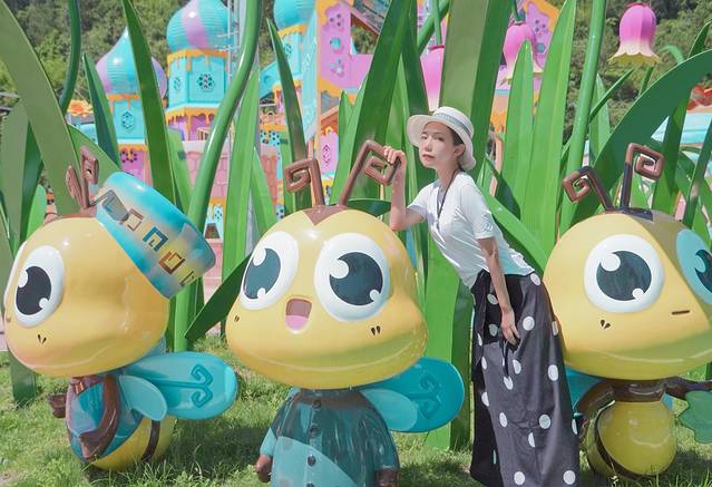 在这种自带滤镜的主题乐园内,没有女孩能忍得住不拍照,最后,我们也一起变成蜜蜂跟它们一起拍照,和小伙伴一起开始寻找着最好看的旅拍机位。