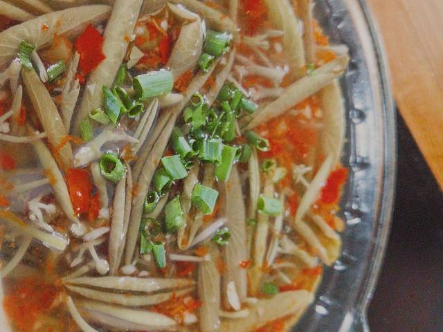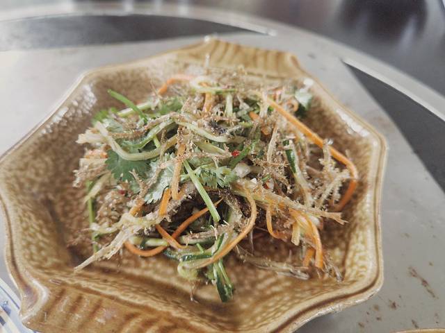 我们在这里吃了很多地道菜式,其中,莼菜,粑粑和下面这道忘记名字的菜是我最喜欢的,还有面和凉粉和面也好好吃。