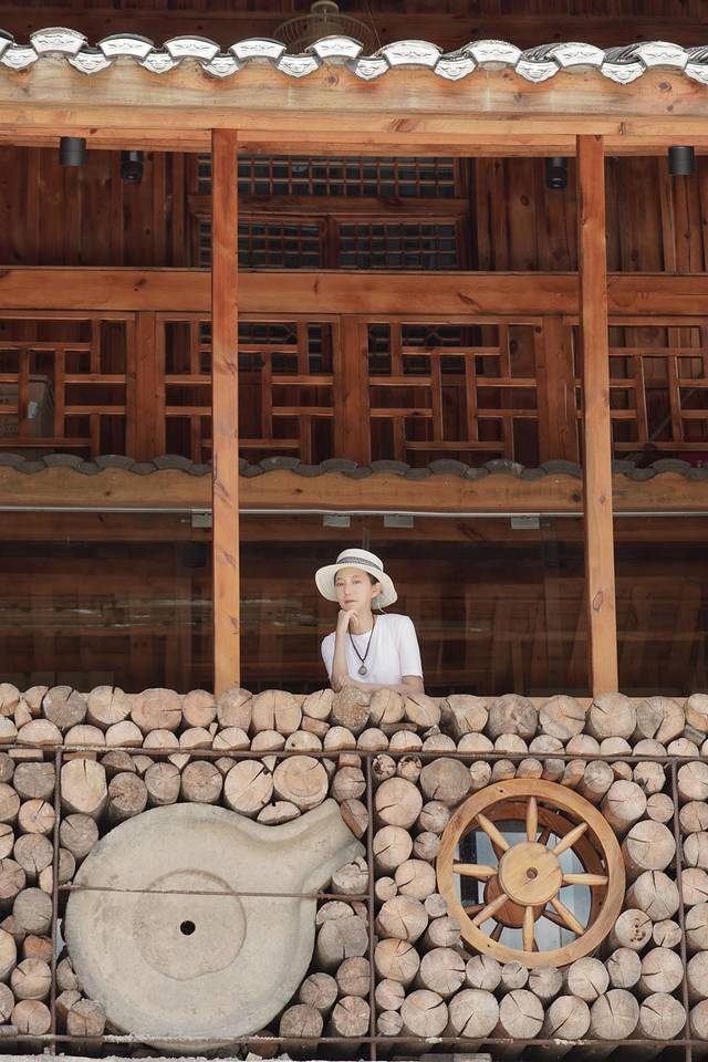 民宿不算很大,因为年轻人都出城了,留守在村内的人不多,厨师一个人要准备我们饭需要点时间,趁着等吃饭的时间,大家再次开启旅拍营业能力,在楼梯边,廊桥上,秋千架上拍起来。