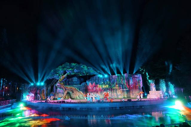 奇幻舞台上演了一场精彩绝伦的水上舞台剧,灯光炫幻莫测,绝对是一场视觉盛宴,是黑夜中最燃的节目。