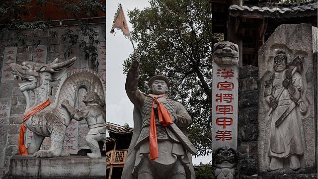 万寿古寨座落于宝鼎山上,居高临下,易守难攻,寨门上“雄震西南”四字有些摄人,据说这里是当年著名女将秦良玉筑寨御敌之地,一代名将在这平乱建功,成为唯一被载入正史的女将。