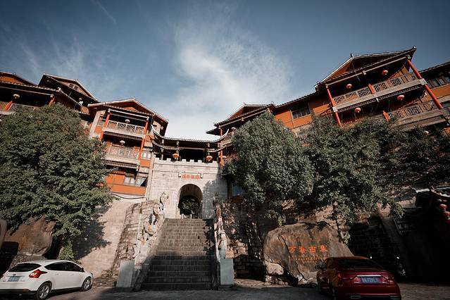 重庆石柱自驾第一站就来到万寿古寨,我们主要是来吃饭的,没想到一进寨门就看到土家吊脚楼依山而建,手执长茅的石兵俑,凶猛的石龙隐隐透着神秘。